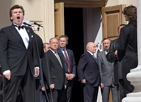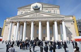 Торжественная церемония открытия главного фасада здания Государственного академического Большого театра России.