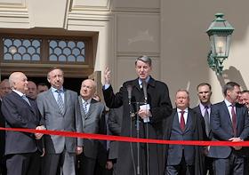 Мэр Москвы Юрий Лужков на торжественной церемонии открытия главного фасада здания Государственного…
