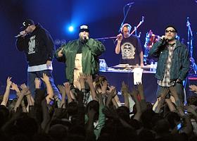 Американская группа "La Coka Nostra" во время выступления на концерте в "Главклубе".