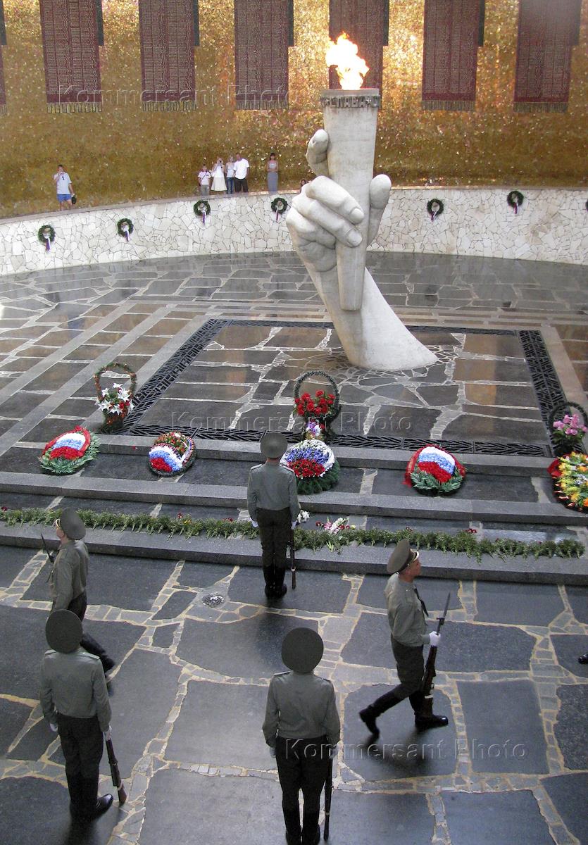 Мемориальный комплекс "Мамаев курган" в Волгограде. Почетный караул у Вечного огня.