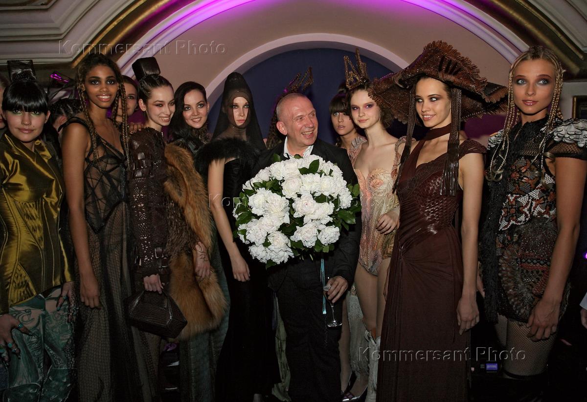 Дизайнер Жан-Поль Готье (в центре) после показа Gaultier Paris коллекции haute couture в рамках…