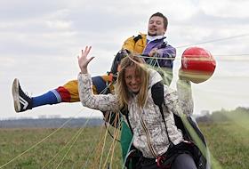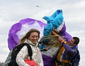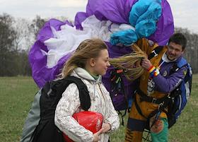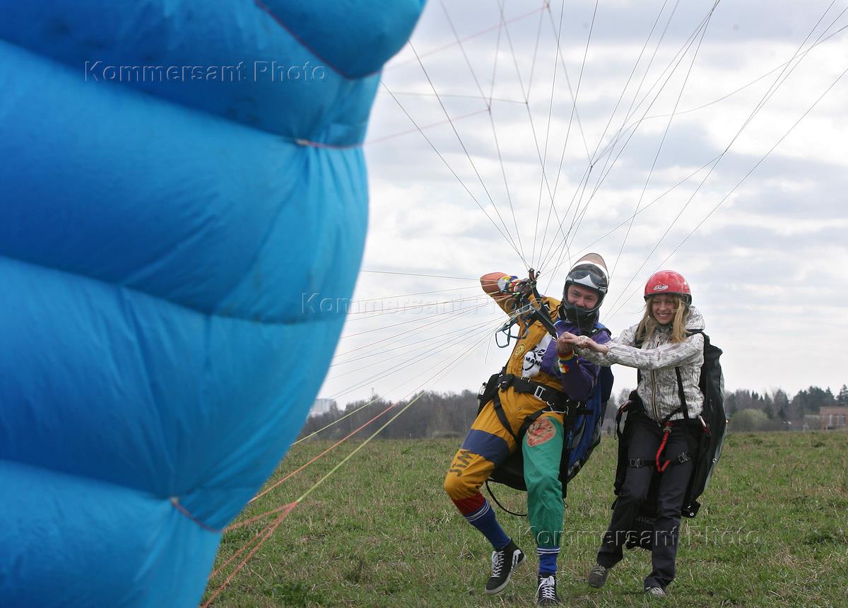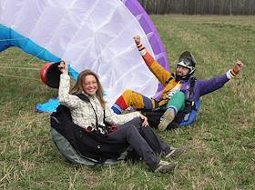Сотрудники компании "P.S. Box" Руслана Кузьмина и Роман Чудиновских в парапланерной летной школе "Дистан"
