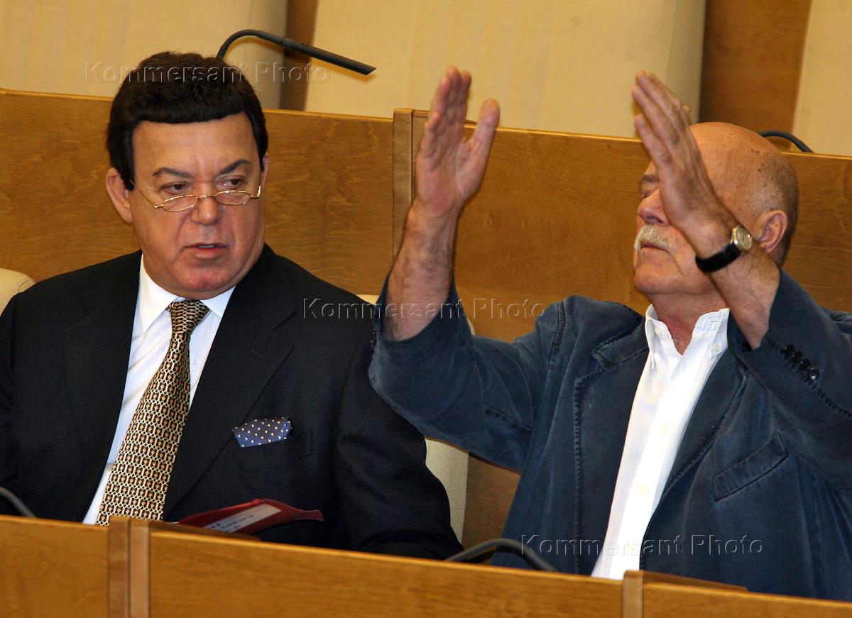Член комитета по информационной политике, информационным технологиям и связи Иосиф Кобзон (слева) и…