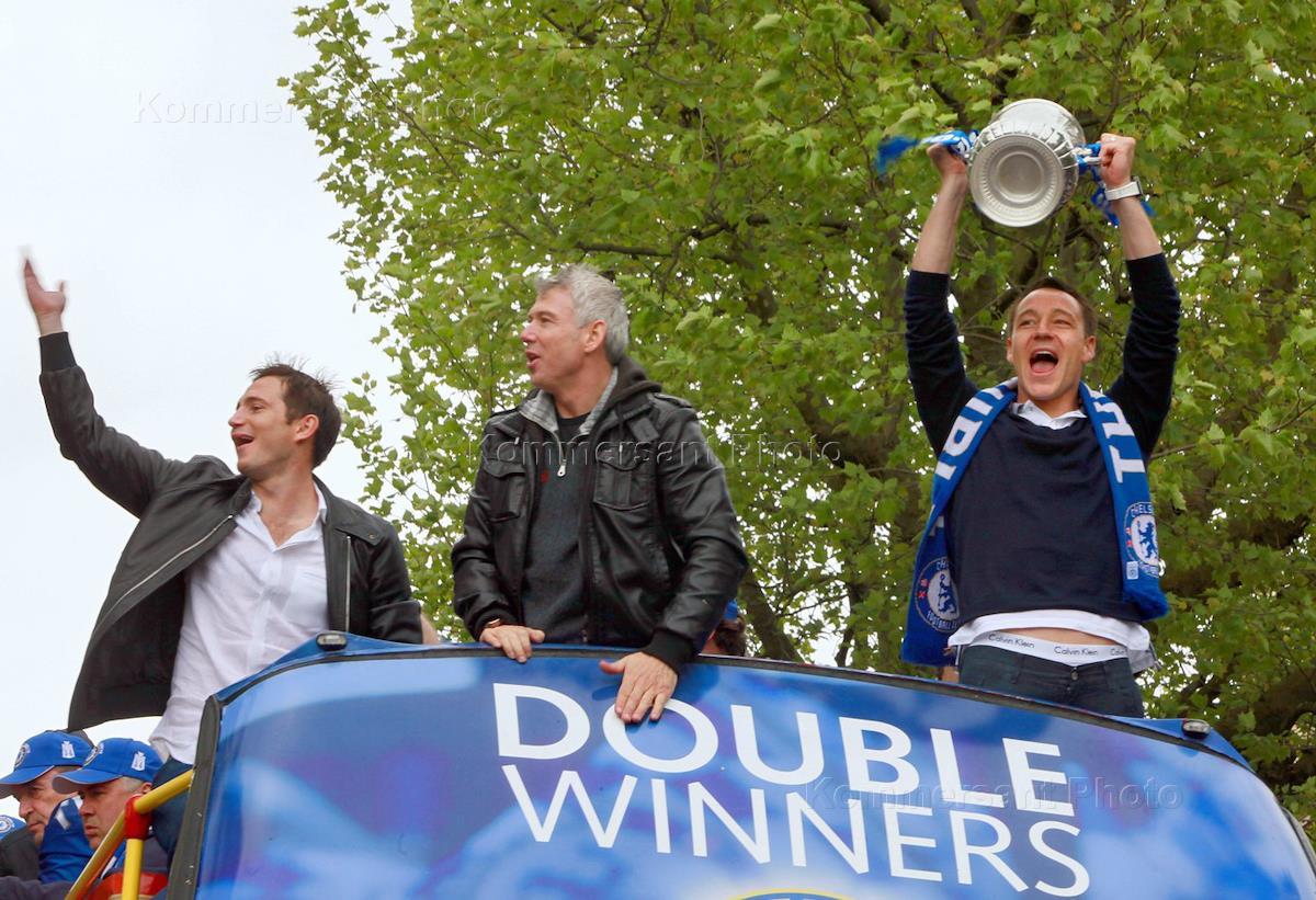 Болельщики футбольного клуба "Челси" празднуют двойную победу команды в Премьер Лиге и Кубке Англии в Лондоне.