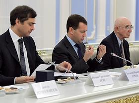 Слева направо: первый заместитель руководителя администрации президента России Владислав Сурков,…