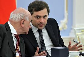 Слева направо: первый заместитель руководителя администрации президента России Владислав Сурков и…