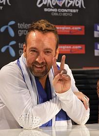 Участник песенного конкурса "Евровидения-2010" от Греции Гиоргос Алкаиос во время пресс-конференции.
