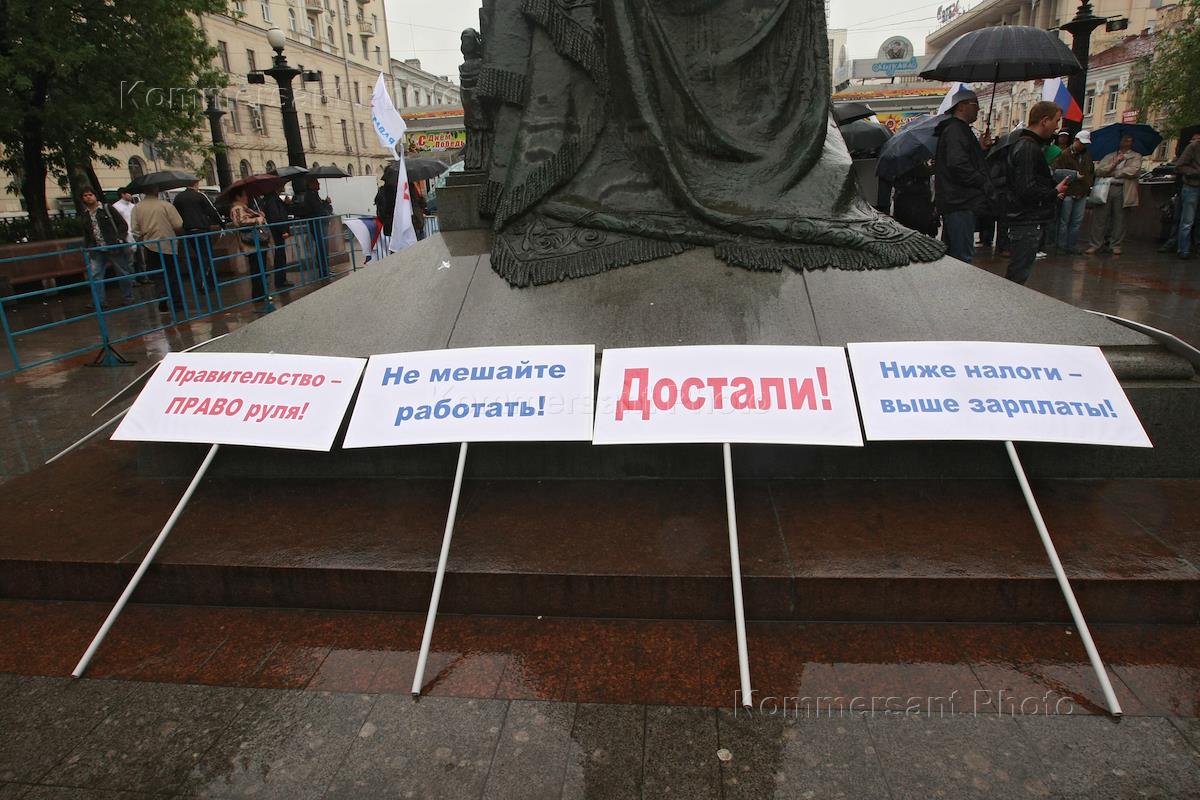 Митинг предпринимателей, организованный партией "Правое дело" возле памятника Грибоедову на Чистопрудном бульваре.