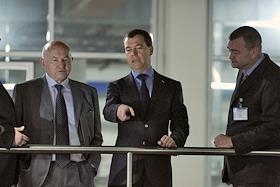 Президент России Дмитрий Медведев (слева) и мэр Москвы Юрий Лужков (в центре) во время посещения…