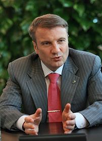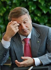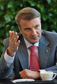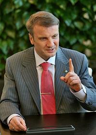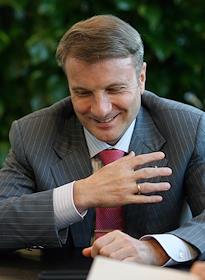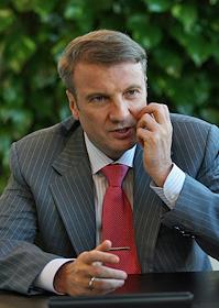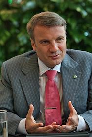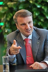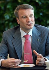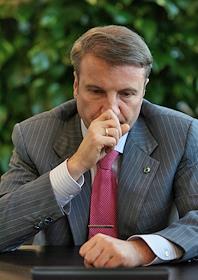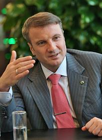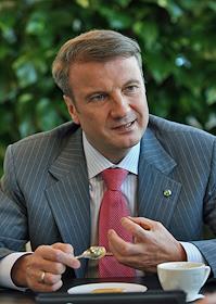 Глава Сбербанка России Герман Греф во время интервью в офисе компании.