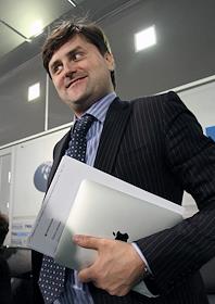 Старший вице-президент Сбербанка России Денис Бугров во время пресс-конференции на тему: "Сбербанк…