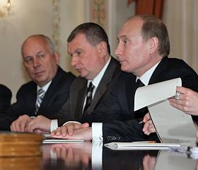 Слева направо: заместитель председателя правительства России Игорь Сечин и председатель…