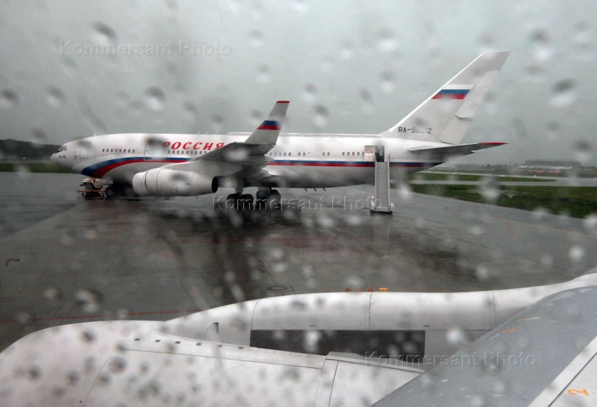 Жанровая фотография. Самолет авиакомпании "Россия" в аэропорту.