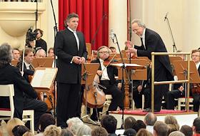 Солист Томас Хэмпстон (слева) и дирижер Юрий Темирканов во время выступления в Большом Зале филармонии.