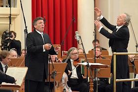 Певец Томас Хэмпсон (слева) и дирижер Юрий Темирканов (справа) во время выступления в Большом Зале…