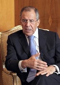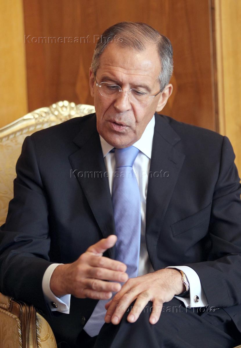 Министр иностранных дел России Сергей Лавров во время интервью в министерстве иностранных дел.