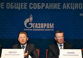Слева направо: председатель правления ОАО "Газпром" Алексей Миллер, первый заместитель председателя…
