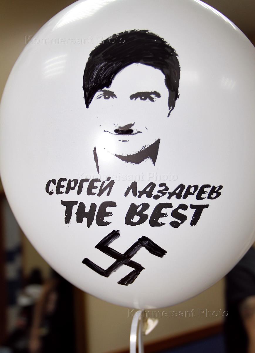 Жанровая фотография. Воздушный шарик с портретом певца Сергея Лазарева в образе Гитлера.