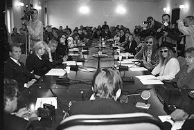 Слева направо в центре: певица Наташа Королева, композитор Игорь Николаев и певица Алла Пугачева во…