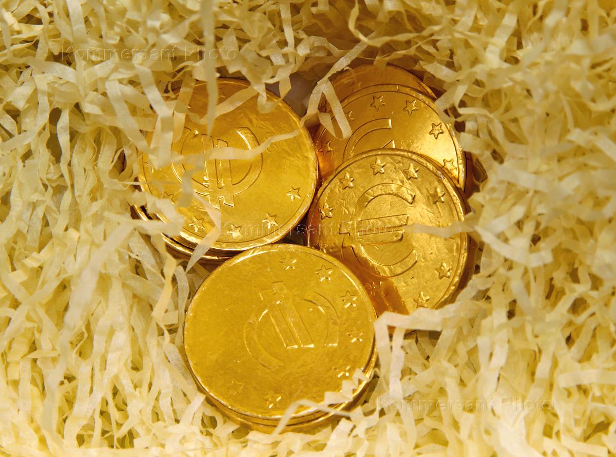 Жанровая фотография. Сувенирные "золотые" монеты евро.