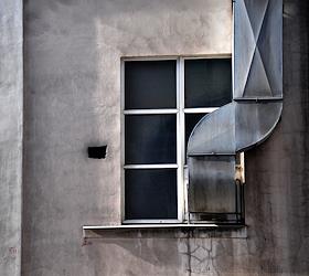 Жанровая фотография. Вентиляционная труба, выходящая из окна здания.