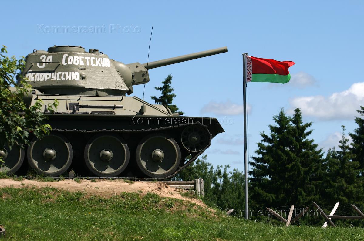 Жанровая фотография. Танк "Т-34" с надписью "За советскую Белоруссию!".
