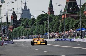 Участник ежегодного автошоу Bavaria Moscow City Racing с участием болидов "Формулы-1".