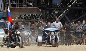 Председатель правительства России Владимир Путин на трехколесном мотоцикле "Харли Дэвидсон"…