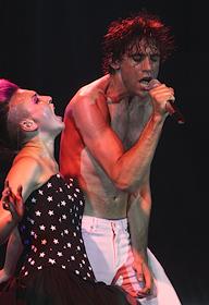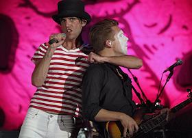 Британский певец Мика (справа) во время выступления на концерте в клубе Arena Moscow.