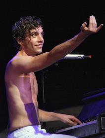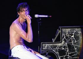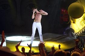 Британский певец Мика (Mika) во время выступления на концерте в клубе Arena Moscow.