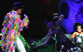Британский певец Мика (слева) во время выступления на концерте в клубе Arena Moscow.
