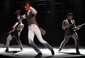 Британский певец Мика (в центре) во время выступления на концерте в клубе Arena Moscow.