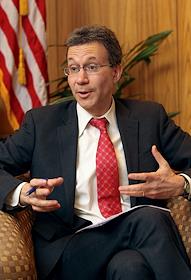 Координатор внешней помощи США в Европе и Евразии Дэниел Розенблюм во время интервью в посольстве…