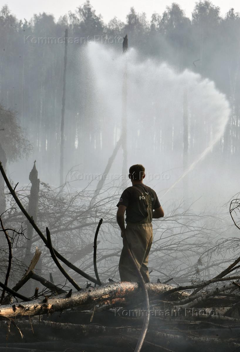 Последствия лесного пожара в Балашихинском районе Московской области.