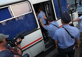 Лидер федерации автовладельцев России (ФАР) Сергей Канаев (в центре) после пикета за равенство прав…