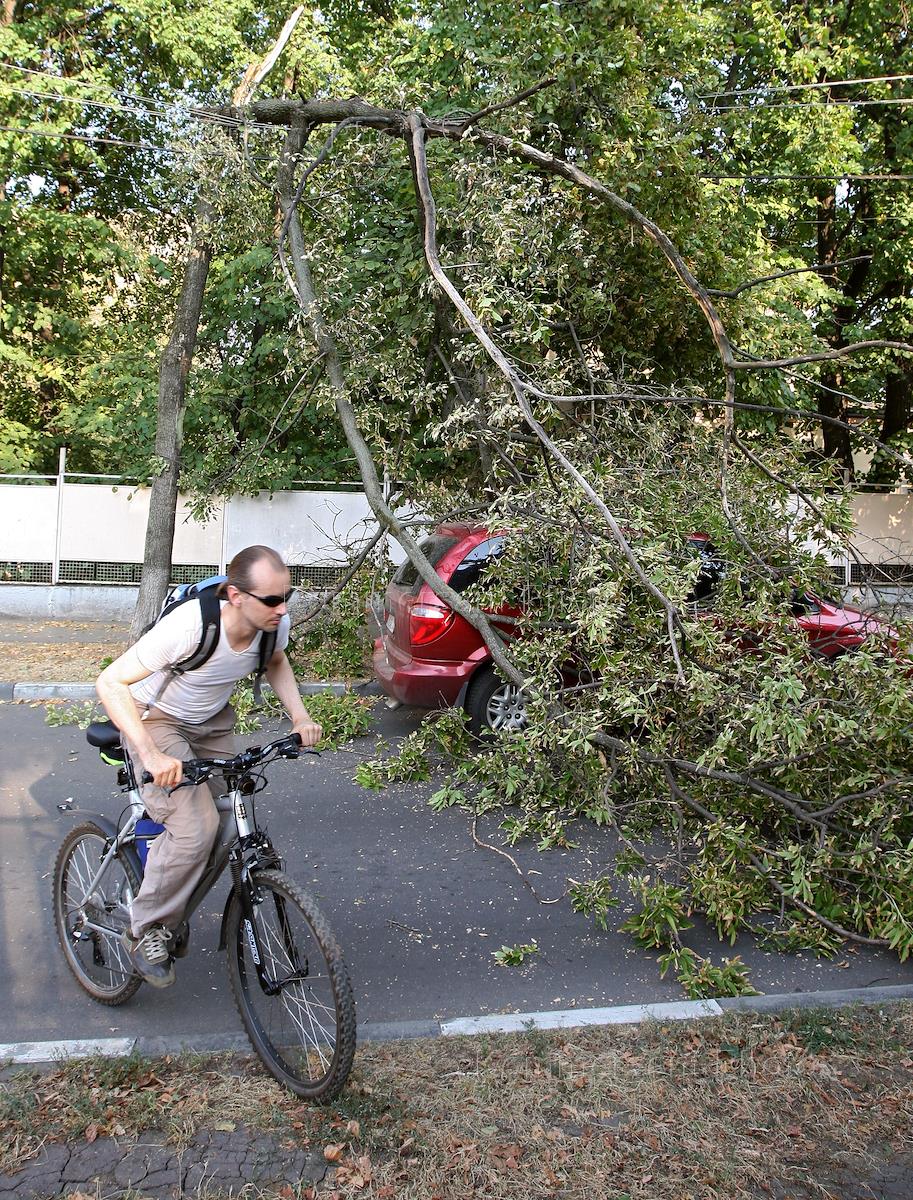 Жанровая фотография. Дерево упавшее на автомобиль.