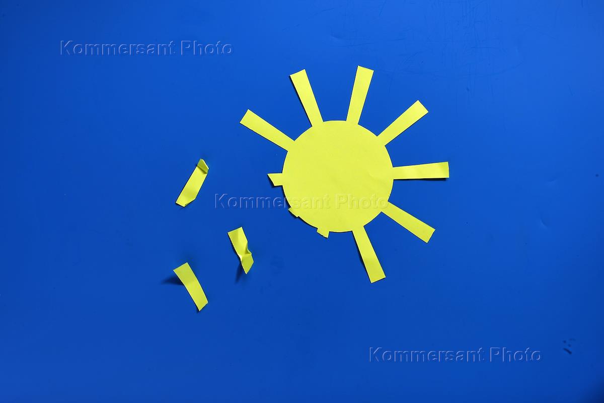 Обложка журнала "Деньги". Бумажное солнце с оторванными лучами.