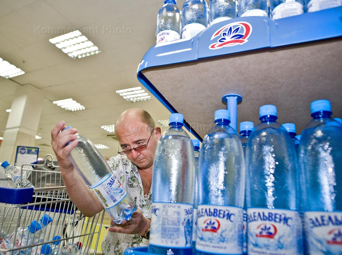 Минеральная вода "Эдельвейс" в магазине торговой сети "Седьмой континент".