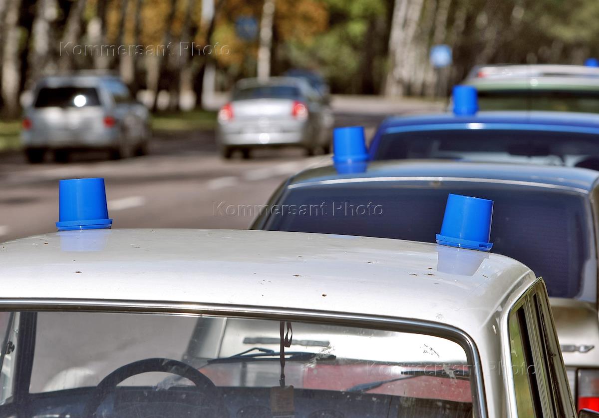 Акция против принятого "сухого закона" для водителей, организованная обществом "Синих ведерок".…