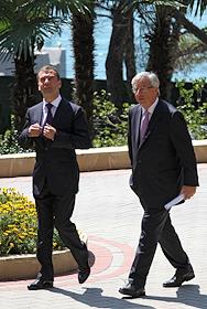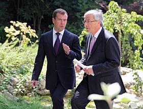 Премьер-министр Люксембурга Жан-Клод Юнкер (слева) и президент России Дмитрий Медведев (справа) во…