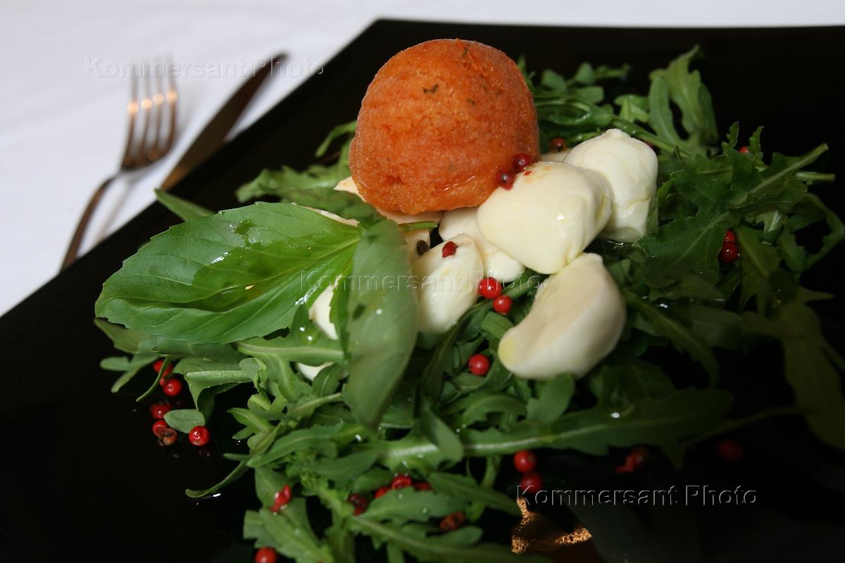Томатный сорбет с моцареллой в ресторане итальянской кухни "Mille Miglia" (Милле Милья).