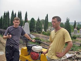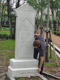 Реставраторы во время реставрационных работ на территории мемориала русским и советским воинам на…