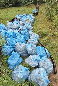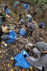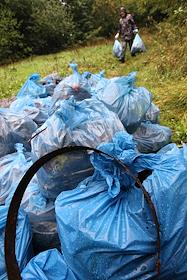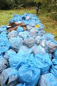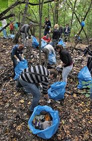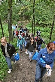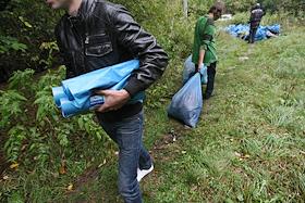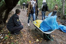 Акция движения "Наши" по уборке мусора и стихийных свалок на территории Химкинского леса.