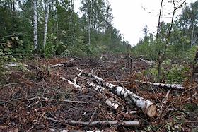 Жанровая фотография. Срубленные деревья на территории Химкинского леса.