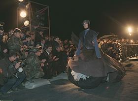 Военные учения батальона легкой пехоты на полигоне в Крцаниси. Солдаты на отдыхе смотрят показ мод.