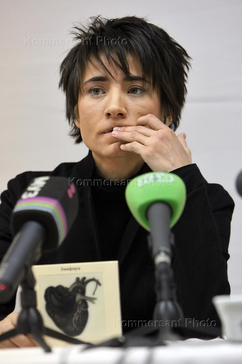 Певица Земфира на пресс-конференции, посвященной серии ее концертов, которые пройдут в сентябре.