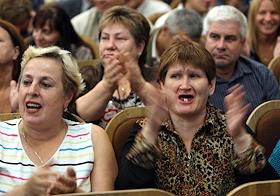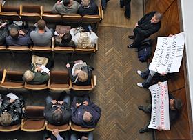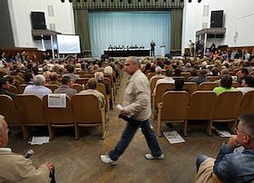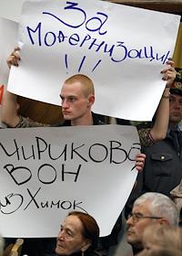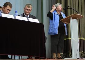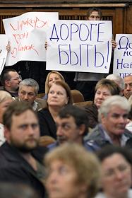 Общественные слушания по вопросу строительства трассы Москва-Санкт-Петербург через Химкинский лес, в ДК "Родина".