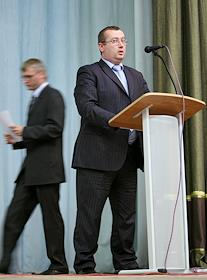 Заместитель генерального директора ЗАО "Петербург-Дорсервис" Владимир Шеметов во время выступления…