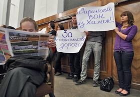 Пикет в поддержку строительства дороги через Химкинский лес у ДК "Родина", где прошли Общественные…