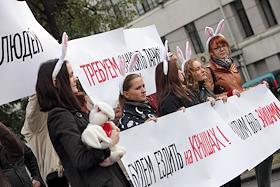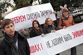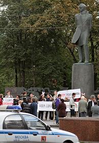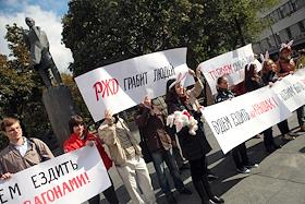 Митинг студентов против повышения тарифов на железнодорожный траспорт у офиса компании "Российские Железные Дороги".
